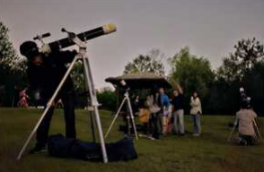 - 별자리 관측 중 망원경을 들여다보는 아이들